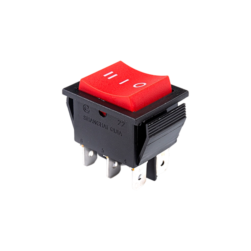 R11-22-vippekontakten med tre positioner har et brugervenligt design med tydelig mærkning for "Høj hastighed", "STOP" og "Lavhastighed", hvilket gør den ideel til applikationer, der kræver variabel hastighedskontrol. Dens standardiserede terminalkonfiguration giver mulighed for nem panelmontering, hvilket giver fremragende alsidighed på tværs af forskellige enheder.