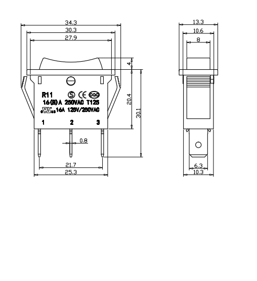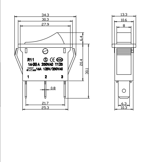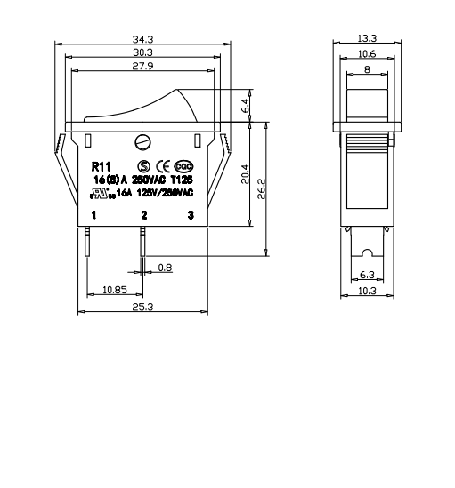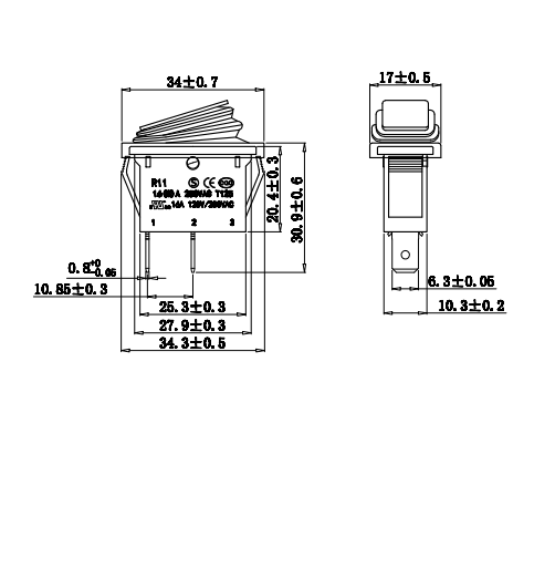 Shanghai Qijia Electronics Co., Ltd. Hjem / Produkter / Vippekontakt / R11 vippekontakt / R11-11 vippekontakt