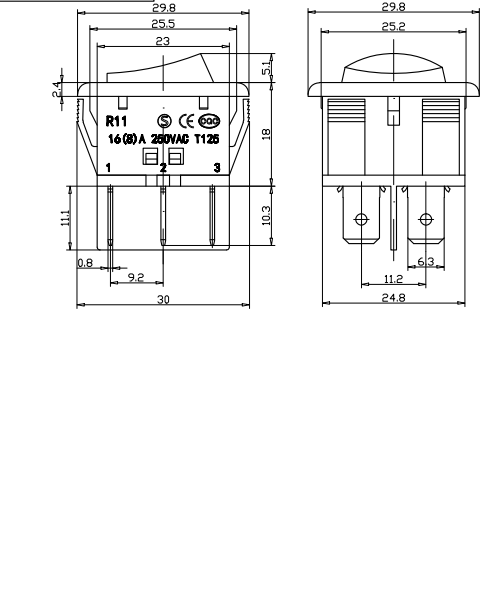 Shanghai Qijia Electronics Co., Ltd. Hjem / Produkter / Vippekontakt / R11 vippekontakt / R11-32 Vippekontakt